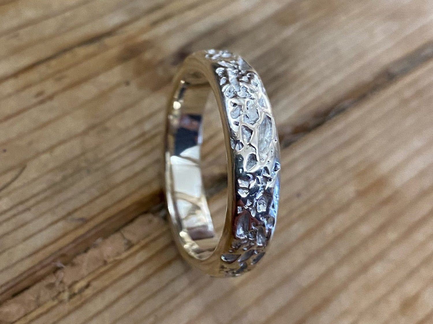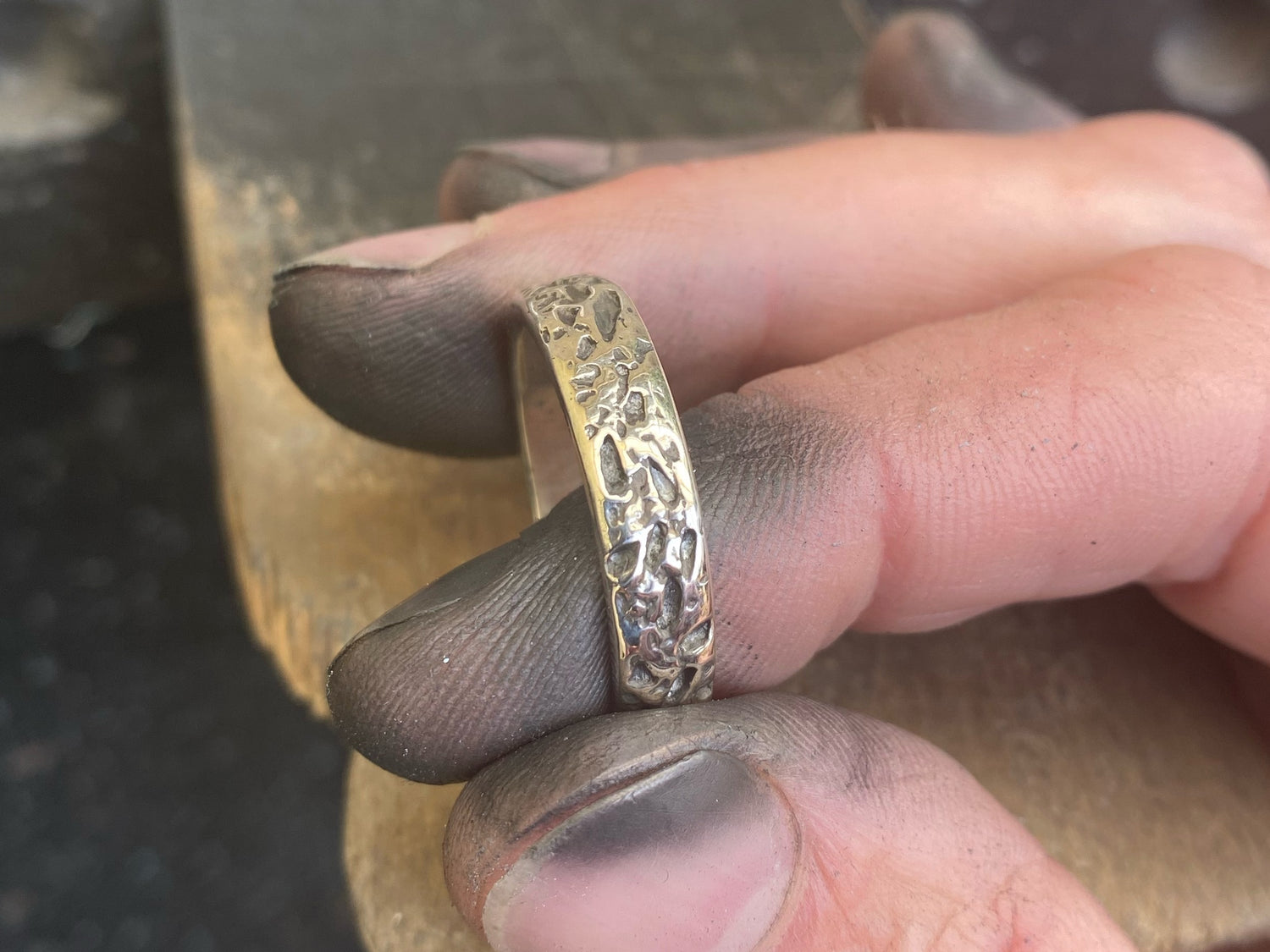 Each beach sand textured ring is handmade by me in my workshop in Cornwall near Lands End, made using ancient techniques and sand from a beach of your choice.