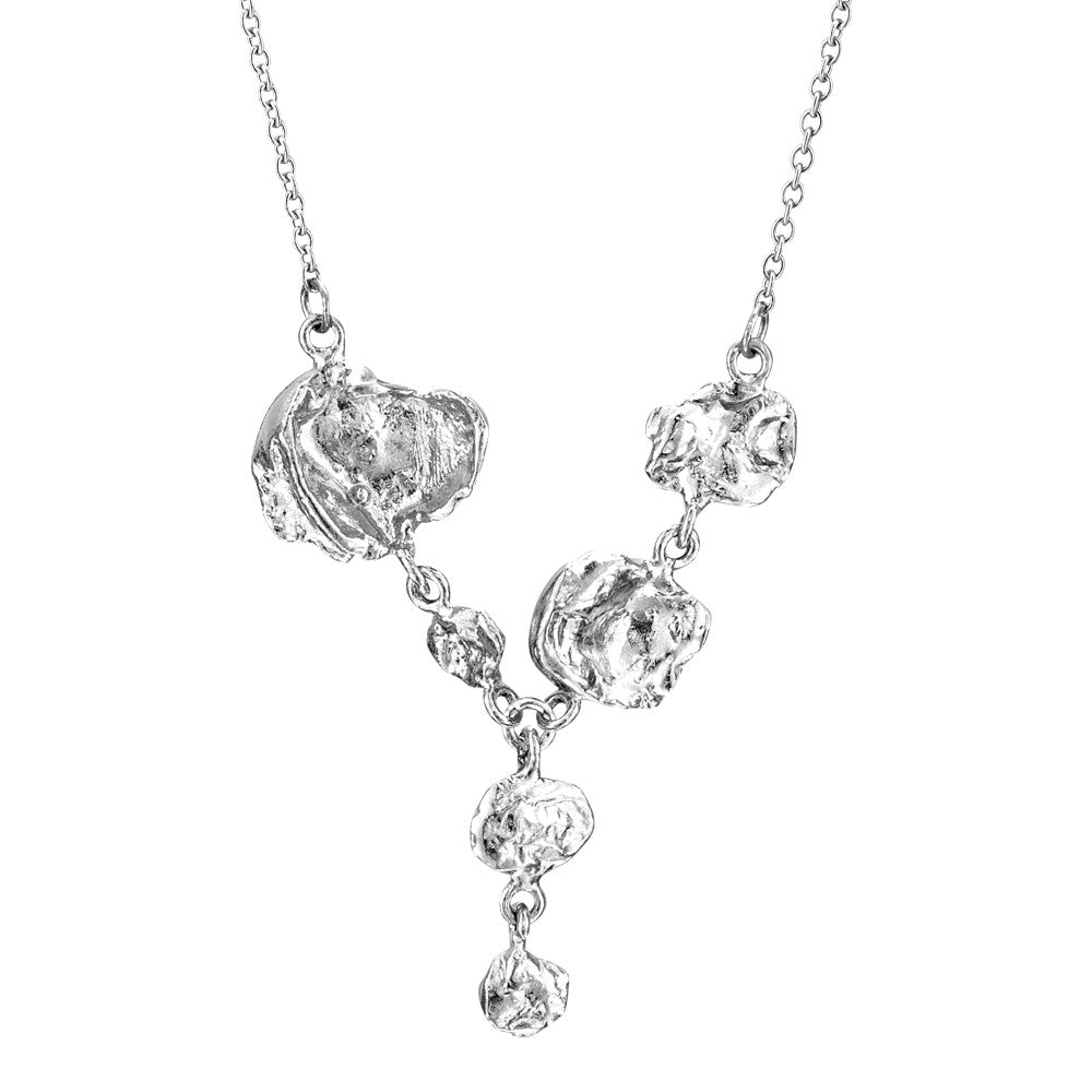 Handcrafted in solid sterling silver with a polished finish, creating a beautiful sparkle from the undulating surfaces. The pendant measures approximately 35mm top to bottom, 30mm across when worn and comes on an adjustable length chain which can be worn at either 16 or 18 inches (40 or 45 cm), fully hallmarked.