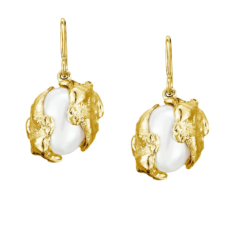 These UK designer pearl earrings are available in either solid sterling silver or 18ct gold vermeil on solid sterling silver, and are individually hallmarked.