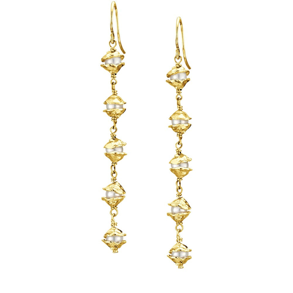 Cornish Seawater Textured Organic Encased Pearl Drop Earrings
