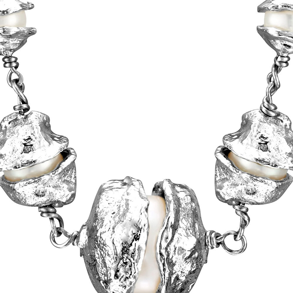 Graduated encased designer pearl necklace created in Cornwall by Joseph Lamsin Jewellery; made using the sea to organically shape and texture the design.
