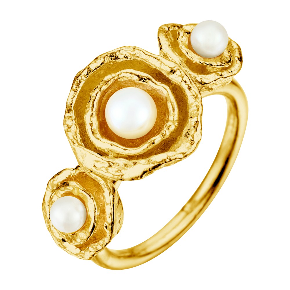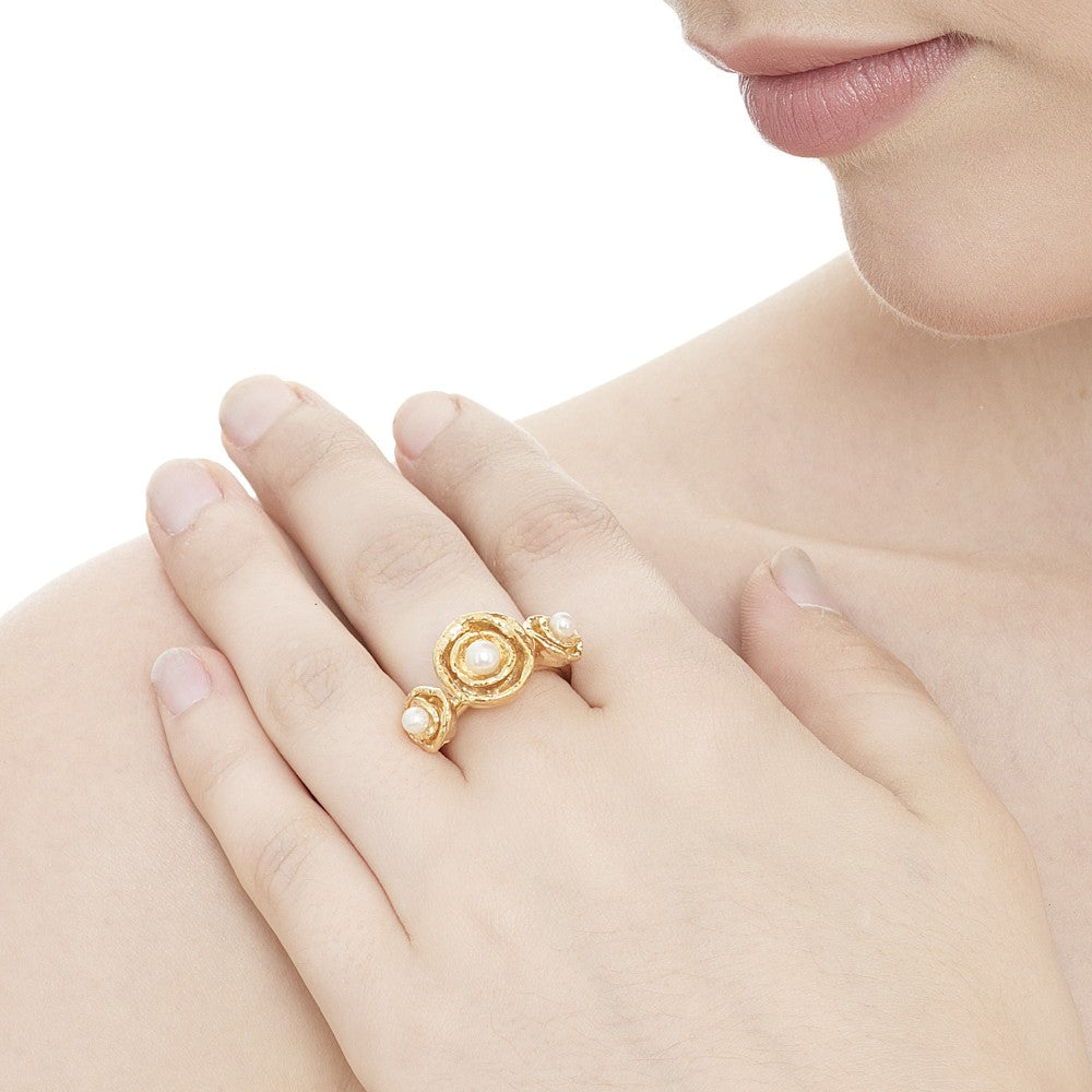 Cornish seawater cast gold vermeil handmade pearl cocktail ring created in Cornwall by Joseph Lamsin Jewellery; made using the sea to organically shape and texture the design. Wear individually or stack with other JL rings, mixing colours and styles to create a unique look.